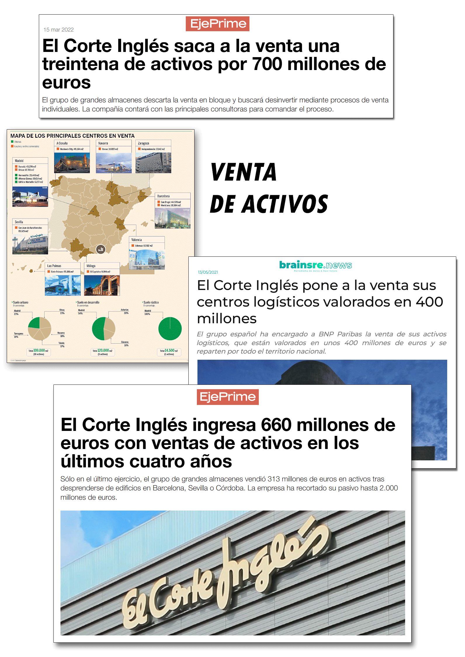 - El Corte Inglés contaba con una extensa cartera inmobiliaria con todo tipo de propiedades que pondría a la venta.